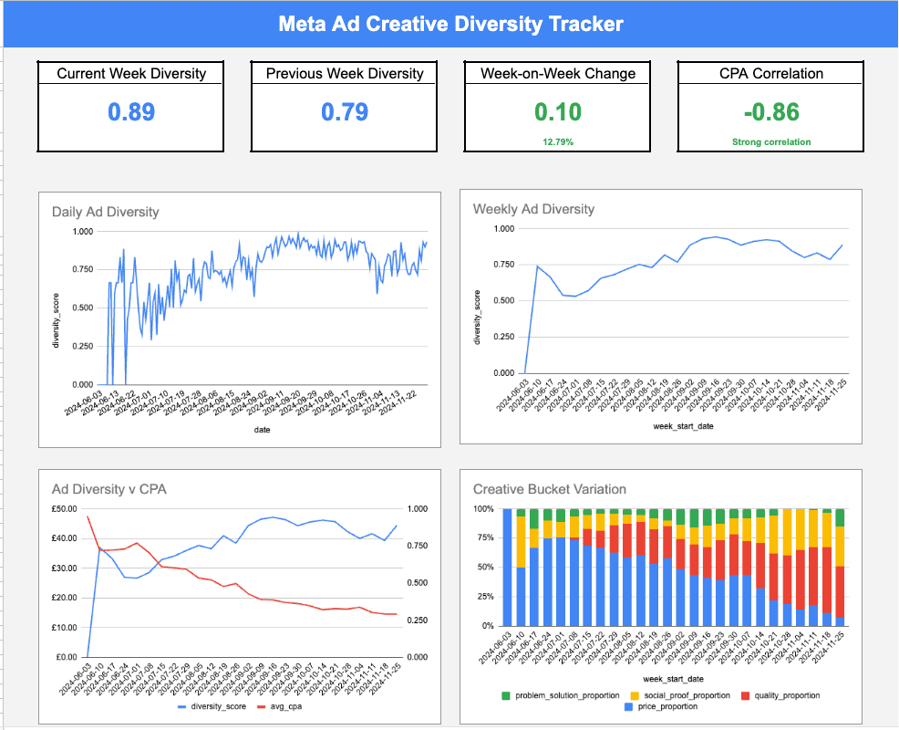 ๐ท CPA Performance Mapping - Track CPA alongside diversity on the same charts. Visually identify when diversity drops correlate with CPA spikes.